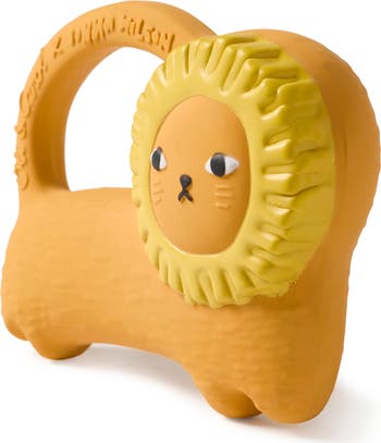 An adorable lion toy made from natural Hevea-tree rubber with hand-painted details is a baby must-have for teething, bath time and tactile play.