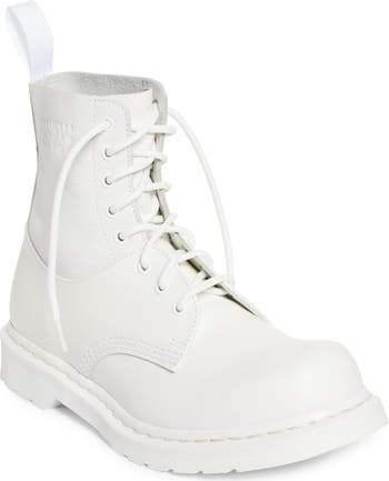 The French design house pairs with the legendary footwear company to create this monochromatic leather boot detailed with iconic codes from both brands. A bouncy AirWair textured sole offers a comfortable ride step after step.