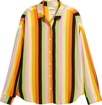 From a collab with the beloved Brazilian brand comes a vibrant striped shirt cut with in the relaxed style of the beach-bound label.