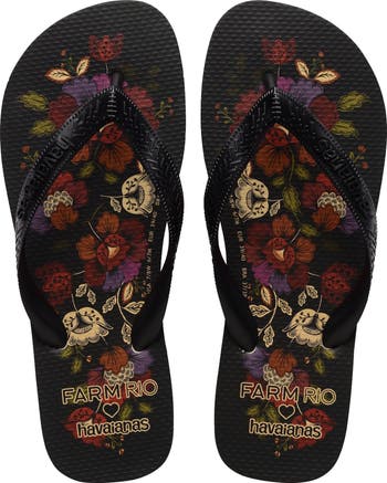 Brazilian brands renowned for their sunny aesthetic collaborate on this classic flip-flop elevated by a cushioned, tropical-print footbed designed by the vibrantly bold FARM Rio.