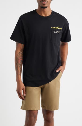 Race into the weekend in a comfy T-shirt made from soft cotton and popped with a cool, vintage-inspired graphic at the chest pocket.