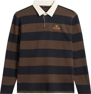Striped cotton-blend jersey pairs with and embroidered Guinness logo on a kick-back-and-relax rugby shirt designed with covered buttons to maintain the sporty look. Wear it whether you're out and about, staying in, or sitting sidelines at any favorite game.