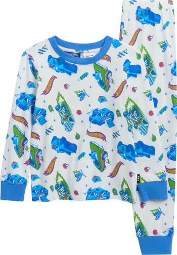 Rock Your Kid x Hot Wheels Kids' Push Your Limits Fitted Two-Piece Pajamas, Alternate, color, Cream/ Blue
