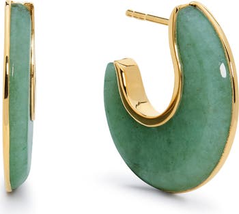 Cool green aventurine is nestled in warm 18-karat-gold vermeil in these split hoop earrings handcrafted in collaboration with celebrity stylist Kate Young.
