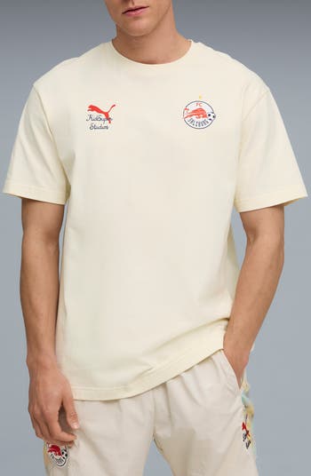 U.S. streetwear brand KidSuper pairs with PUMA in a game-winning collab celebrating Austria's Red Bull Salzburg football club. Made of lightweight, breathable cotton, it sports an easy-moving fit plus the club crest and a bright logo mash-up scoring points on the chest.