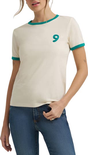 Slip into the glam style of this '70s-inspired ringer T-shirt made in collaboration with country-music star Lainey Wilson. The singer's lucky number 9 is embroidered on the front, while 'Hearts, Dreams, Jeans' embroidery on the back sets the tone for your warm-weather days.