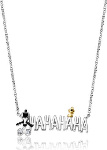 Snoopy and Woodstock share a laugh on the fixed pendant of this joy-sparking necklace accented with hand-set cubic zirconia that playfully catch the light.