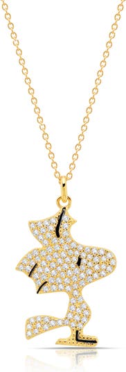 Your favorite sidekick gets reimagined in gleaming pavé on this pendant necklace that showcases Woodstock traced with glossy black enamel and hand-set with cubic zirconia.