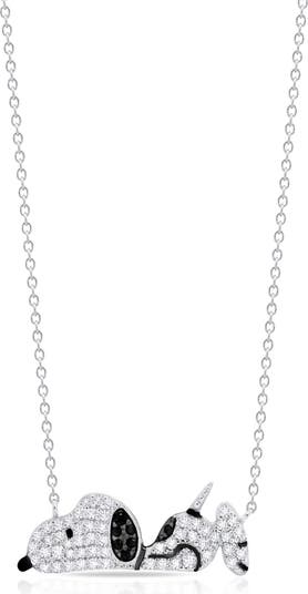 Laid-back icon, all-over sparkle—this delicate chain-link necklace showcases a lounging Snoopy pendant fully pavé-set with hand-set cubic zirconia.