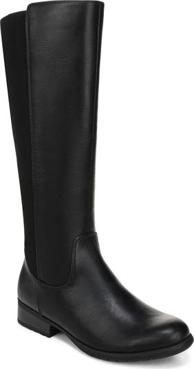 A ribbed panel at the back ensures a totally comfy fit in this knee-high boot built on cushioned support and a flexible sole.