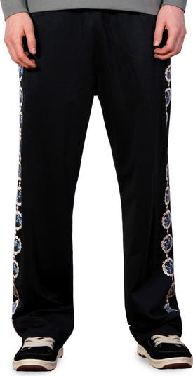 Giant jewels cascade down the legs and bump up the conversational value of inky-black track pants designed by Pop Art pioneer Richard Bernstein in a brilliant PLEASURES collab. The relaxed fit gives you a person-of-leisure vibe while you conspicuously show off your stones.