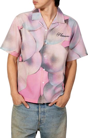 A pearly pink print by Pop Art pioneer Richard Bernstein scatters in shadow and light on a camp shirt that gives you a rich look without spending a lot of clams. Wear it on its own or layered and unbuttoned to add bankable value to your personal style.