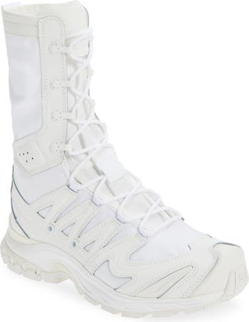 Designed in collaboration with Salomon, this limited-edition ripstop sneaker-boot has been transformed to echo the pristine knee-high wool socks of alpine folkloric festivities—its high laced front a nod to classic mountain garments. Ultra durable and stable underfoot, this boot’s quick-drying materials bring function to the forefront of a reimagined classic.