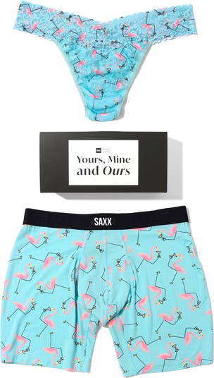 The Signature Lace Original Rise Thong and a SAXX Super Soft Vibe Boxer Brief make the perfect couple's gift for any holiday or just because.