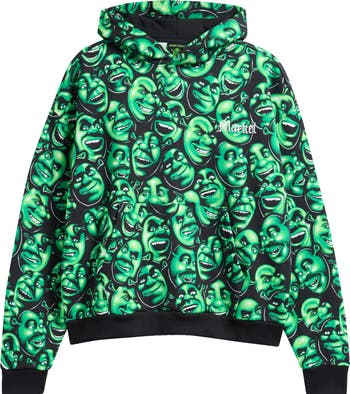 They say ogres have layers, and now your layers have ogres. It's easy being green in this soft, cozy cotton-fleece hoodie starring beloved swamp royalty.