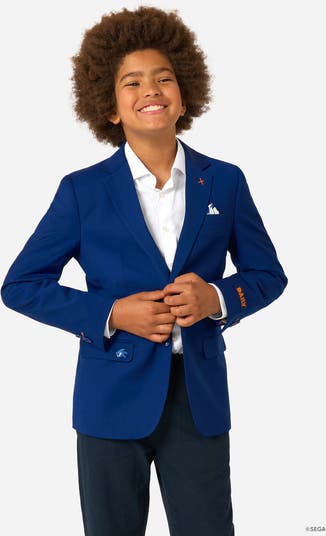 Tailored to look smart and designed to speed up any kid's style game, this classic blue sport coat features a discreet Sonic the Hedgehog on one pocket flap and the entire Sonic universe brightening the interior. Lightly constructed shoulders emphasize the fitted waist to bring traditional detailing to the ready-to-play energy.