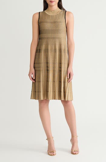 Subtle shimmer and rich texture define a sleeveless knit dress that's comfortably elegant and sure to be a favorite.