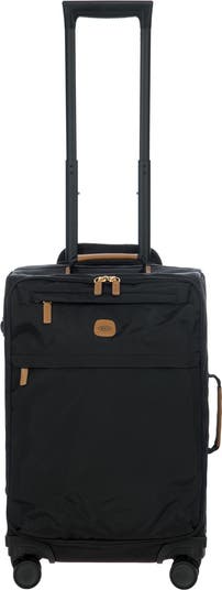 The 21 inch carry-on Trolley from the X-Collection is made of durable recycled fabric, water-resistant, with a rigid and lightweight internal structure. The main compartment is equipped with a zip with two sliders. It also includes two zipped front pockets, interior pockets and straps to help you organise your belongings. The wheels swivel to ensure smooth 360° movement, and are recessed to maximise the internal capacity of the trolley bag. Complete with an address tag and rings for a padlock (sold separately). The trolley bag features a padded handle on the top, four double silent wheels with bearings, sturdy and stable aluminium tubes, and an ergonomic handle for complete comfort. Finished with genuine leather details, one of Bric's signature design elements, and the brand's logo.