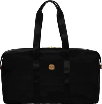 The large 2-in-1 foldable holdall from the X-Collection is made of soft, lightweight and durable recycled fabric, water-resistant. The detachable internal zipped pocket can be used as practical make-up bag or mini bag thanks to the included shoulder strap; the entire holdall can also be folded up and stored inside. This holdall can be carried by hand or on the shoulder using the handles. There is a strap on the back to attach it to a suitcase handle. Its spacious design makes it particularly practical. The main compartment is equipped with a zip with two sliders. Embellished with genuine leather details, one of Bric's signature design elements.