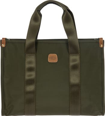 The X-Collection Opera Bag combines volume and essential lines, and is made of a water-proof, recycled fabric. Reinforced bottom, padded tablet pocket, double handle and removable shoulder strap for this functionally elegant bag. Safe zipped fastening. This functional 24/7 bag is embellished by ribbons and genuine leather details - Bric's hallmark.