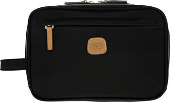 The Necessaire from the X-Collection is made of soft, lightweight and durable recycled nylon, water-resistant. It makes a great sponge bag to hold all your personal care items. There is a convenient handle on the side. Its spacious design makes it particularly practical. This bag includes an external zipped pocket, an internal zipped pocket, side compartments and practical elastics to organise your accessories. The main compartment is equipped with a zip with two sliders. Embellished with genuine leather details, one of Bric's signature design elements.