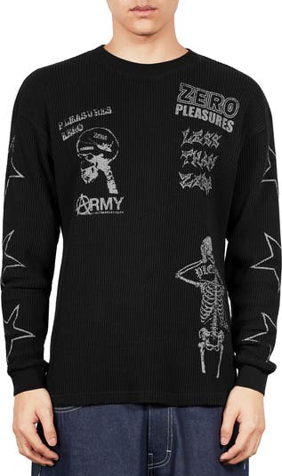 In a cool collab with Zero, skateboard culture merges with the brand's street cred in this long-sleeve thermal T-shirt stamped coming and going with head-turning graphics.