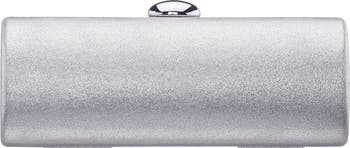 An organically-shaped clasp and circular profile bring stunning dimension to a metallic faux-leather clutch suspended from an optional chain strap for hands-free wear.