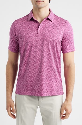 A tightly packed grid of flamingoes lightens the mood of this performance-focused polo that keeps the look elevated and the feel ready for action with stretchy, sweat-wicking fabric that's quick-drying and built for long afternoons on the course.
