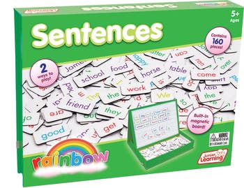 Rainbow Sentences is a wonderfully hands-on magnetic resource which will stimulate your student’s creativity and excite them about developing their literacy skills by literally building sentences! Through a range of nouns, verbs, adjectives, pronouns, sight words and punctuation children will, not only understand how to construct different sentences but can have endless hours of fun creating their own interesting and silly sentences and stories. This pop-up box with an in-built magnetic board means that children can take their Rainbow Sentence builder wherever they go in this easy to carry pack. Contains 160 pieces and built-in magnetic board. Ages 5+