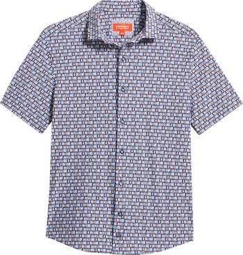 XC+™ Motion Geo Print Short-Sleeve Performance Knit Button-Up Shirt