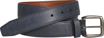 Perforated lining enhances the breathability of this burnished-leather belt secured with a brushed, gunmetal-tone buckle.