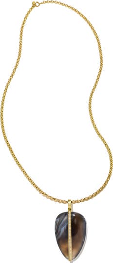 A beautifully banded Botswana agate is accented with 14-karat gold and a line of diamonds on this earthy-yet-glam chain necklace.