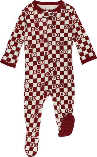 Your little valentine will be cute and comfy in this soft, long-sleeve organic-cotton footie featuring a checkerboard print with hugs and kisses and a two-way zipper for easy on and off.
