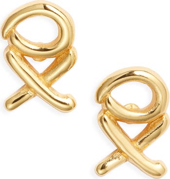 Gleaming XO motifs take sculptural form on these refined stud earrings handmade in the USA and finished in 18-karat gold plate over sterling silver.