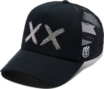 Embrace your individuality in this crystal-sparkled twill trucker hat, where the iconic Shimuchan mascot stars in a small patch on the breathable mesh back.