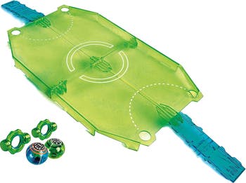 Spinos Battle Game is a force field battling game! Spinos is a force field ball that is controlled with the power ring. When you spin it, a magnetic force field is created around the ball. You can then use the power ring to remotely control the magnetosphere with no batteries or electricity. Be the first to knock your opponent out of the arena! Comes with two Spinos, two power rings and battle arena. There are different sets and you can collect and connect them all. Everything works together so the more you get the bigger, more challenging, and more fun your trax system becomes. Powered by magnets. No batteries required. Ages 6+.