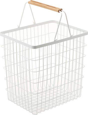 The wired market-basket design of this hamper helps keep clothes a little more fresh while you wait for laundry day's arrival. The simple, pleasing design complements any décor, and the comfortable wood handles make it easy to collect items throughout your home.