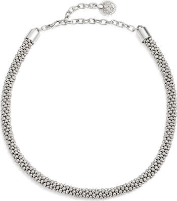 Silvertone ball beads distinguish a striking necklace inspired by the Ottoman Empire and finished with a coin-inspired pendant at the extender.