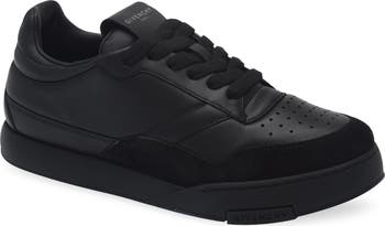 Haute couture meets street-savvy style on this court-inspired sneaker that exudes contemporary edge in a blackout design. The rubber sole features a logo-lettering tread for an unexpected take on branding.