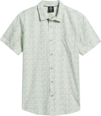 Laid-back surf vibes abound in this short-sleeve shirt thanks to its allover yardage print and a wash process that delivers years-worn softness right out of the box.