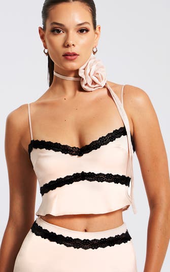 Yareli Lace Trim Satin Strappy Top