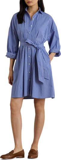 Capture a preppy, seaside-inspired aesthetic in a crisp cotton shirtdress patterned in slender stripes and perfected by a pair of pockets.
