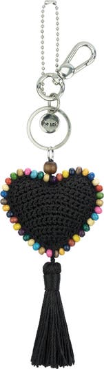 Show some love with this handmade Balinese dangle. Featuring a crochet heart rimmed with wooden rainbow beads, this one-of-a-kind creation instantly adds a touch of whimsy to handbags, key rings and more.