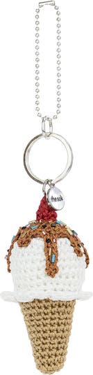 Add whimsy to any bag with this crocheted ice–cream dangle. Finished with rainbow "sprinkles" cleverly effected with colorful glass-seed beads, this one-of-a-kind charm was thoughtfully handmade by Balinese artisans. Attach it anywhere for a playful, textured touch.