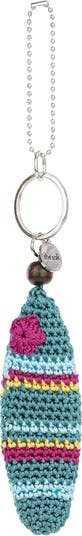 Add a pop of homespun charm with this handmade surfboard dangle. Skillfully hand-crocheted from recycled strings by Balinese artisans, this one-of-a-kind creation lends a touch of coastal whimsy to handbags, keychains and more.