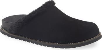 Keep comfortable on the weekend in this well-cushioned mule made of soft suede and trimmed in plush faux shearling.
