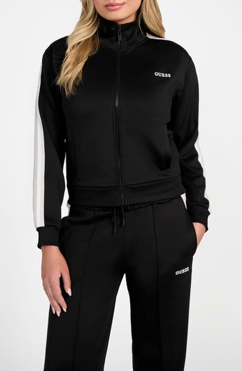 Striped tape at the sleeves reinforces the sporty vibe of this track jacket cut from a dense scuba knit with plenty of flexible stretch to keep you moving...or not depending on your weekend mood.