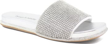 Add sparkle to your summer looks with YATIN — the flat dressy slide designed to elevate any outfit. Featuring a dazzling rhinestone upper, YATIN brings a touch of glamour to your everyday wardrobe. Its sleek, slip-on design makes it effortless to wear, while the flat sole ensures all-day comfort without sacrificing style. Lightweight, versatile, and eye-catching, this flat slide combines comfort and sophistication in one effortlessly chic design.