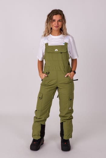 Model information - Height 5ft 6 | UK size 6 to 8 | Wearing size Small The OOSC Yeh Girl Ski & Snowboard Bib Pant in Khaki is coming in hot with serious rider-driven performance detailing and retro style. You asked us for bibs and we have delivered them to you! The OOSC Bib Pant has 7 pockets including two large cargo pockets and a kangaroo pouch pocket on the chest. Side Zip for easy access and adjustable elastic straps for the perfect fit The OOSC Yeh Girl Bib Pant is built from 100% recycled, durable nylon sourced from sea waste predominantly fishing nets! It has a 20,000mm waterproof rating & 20,000gm2 Breathability rating & is topped with a ZERO carbon durable water repellent to keep you dry, warm and comfortable whatever conditions you're riding in. It also has ankle gaitors for the deep pow days and leg vents for those bluebirds! At a Glance Features: Other Features: Relaxed Fit to allow for layers Kangaroo Pouch Pocket Taffeta Lined Ass patch to keep it warm! Ankle Gaitors Adjustable Straps Leg Vents 2 cargo pockets Ankle Zips 2 back pockets Full list of our technical features OOSC are extremely proud to have be able to say that ALL of our outerwear is made from Recycled Materials each Yeh Man bib is made from 100% recycled sea waste our first initiative to remove waste from our Oceans! (Read about how our jackets are made from fishing nets) The OOSC Yeh Man Girl Pant is sick whether you're hitting rails, hucking kickers, dropping cliffs or just at après; plus looks great with the interchangeable jackets in the range! Get this bad boy on and get ready to Rip up the slopes!