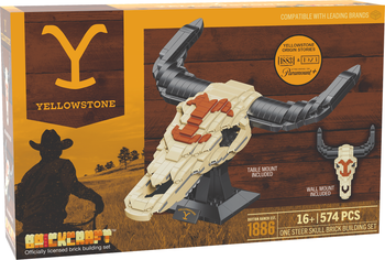 - Assemble your Yellowstone Steer Skull with this 563-piece Brickcraft set, capturing the essence of the frontier.- Choose your display preference with a brick-built tabletop base or the included wall mount for distinctive wall décor.- Celebrate the untamed spirit of the American West with this gift, perfect for Yellowstone Series fans, western culture admirers, and creative builders.- Explore other Brickcraft collections, like the MTV series, for more creative building adventures.
